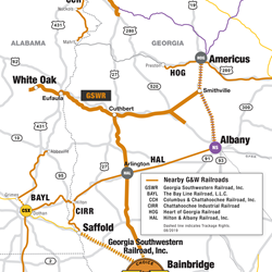 “Customers in southwest Georgia, southeast Alabama and the nearby Florida Panhandle can receive inbound, bulk raw materials via rail at the Bainbridge terminal, hold them on site, and have them delivered to their facilities via truck on a just-in-time basis,” said Jim Irvin, GSWR president. “Likewise, outbound bulk products can be transported to the terminal via truck for loading onto railcars to their final destinations.”